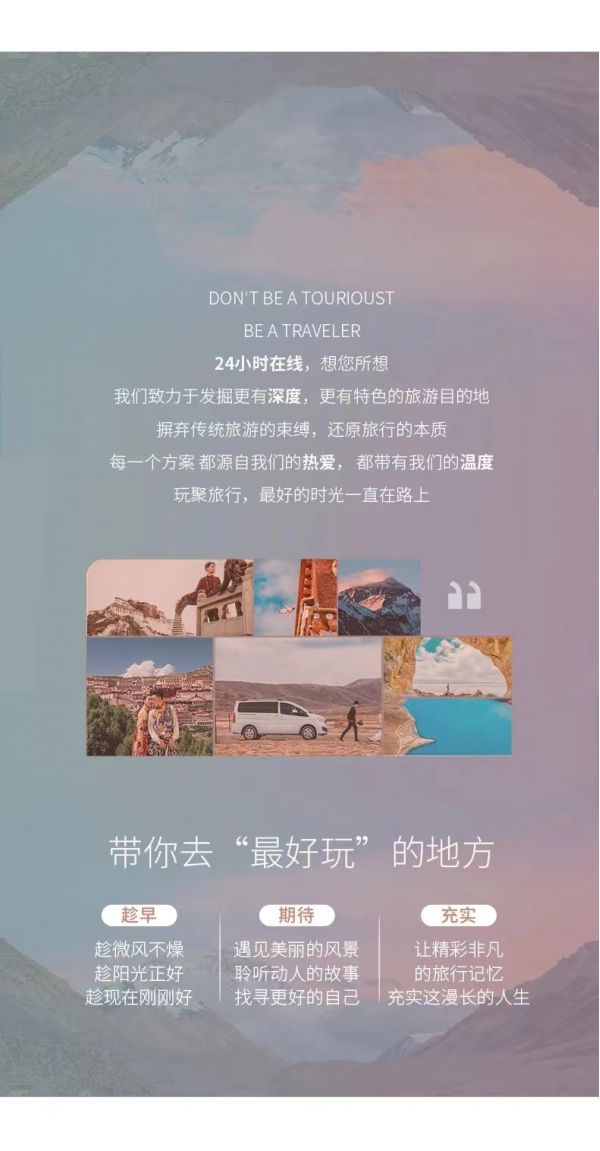 (1)出發前一天晚上18:00-22:30通知接你的具體時間,請務必保持電話暢通(接早的時間根據師傅線路決定,為保障整個團隊的順利出行請注意配合時間安排,感謝理解)