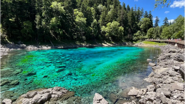 吃過早餐我們乘車抵達九寨溝景區停車場,下車步行至游客中心(距離約1km),等待領隊為大家辦理好進溝手續,大家持本人有效身份證件(與訂票證件一致)領取門票進入景區,然后換乘景區內觀光車,開啟我們“水景之王”九寨溝的自由行一日游~