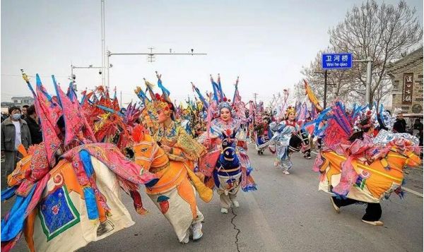人們為避免火災,以這種方式祭祀火神,表達了勞動人民一種辟邪除災、迎祥納福的美好愿望。“火神廟會”舉辦期間,到處人山人海,傳統節目有大集街高蹺、軍莊秧歌、背閣、抬閣、八卦秋、武術表演、竹馬、蓮花燈、火龍、花船等,男女演員盛裝上陣,從臉譜到服裝,無不體現了濃郁的傳統文化色彩。