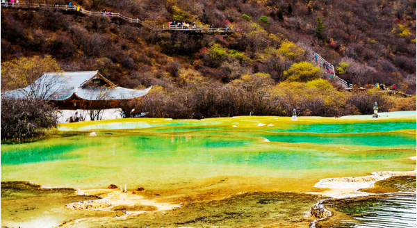 九寨溝得名于溝內(nèi)有九個(gè)藏族村寨,以“九寨六絕”——翠湖、疊瀑、彩林、雪峰、藏情、藍(lán)冰而聞名天下,時(shí)隔四年,九寨王者歸來(lái),終于全區(qū)域開(kāi)放。九寨溝的海子沉淀著不同礦物質(zhì),因此個(gè)個(gè)色有不同,或澄青或碧綠或鵝黃,宛若上天散落人間的寶石;除卻如夢(mèng)似幻的自然景觀,還有藏家木樓、晾架經(jīng)幡、棧橋、磨房、藏族習(xí)俗及神話傳說(shuō)構(gòu)成的人文景觀。