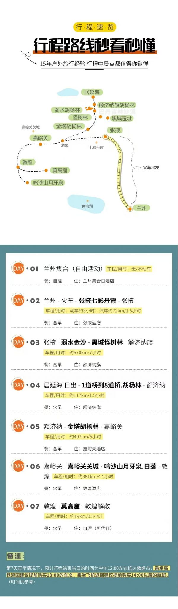 備注請(qǐng)對(duì)應(yīng)使用我方額濟(jì)納7日行程,因使用其它行程造成的投訴,責(zé)任自負(fù);請(qǐng)仔細(xì)閱讀以上行程文檔,同意并保證遵守我方安排,以免為您帶來不必要的麻煩;如產(chǎn)生合同糾紛或人身意外事故,按《中華人民共和國合同法》、《道路交通法》、《保險(xiǎn)賠償條例》裁定;本行程作為旅游合同附頁與旅游合同同等法律效力。
