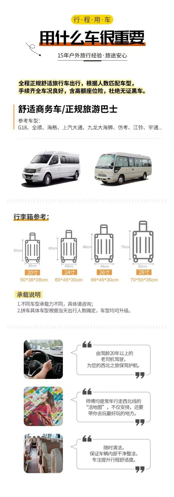 服務(wù):10人及以上(包含10人),提供持證正規(guī)領(lǐng)隊(duì)服務(wù);10人及以下,由經(jīng)驗(yàn)豐富的司機(jī)帶隊(duì),無單獨(dú)導(dǎo)游服務(wù),請(qǐng)諒解。