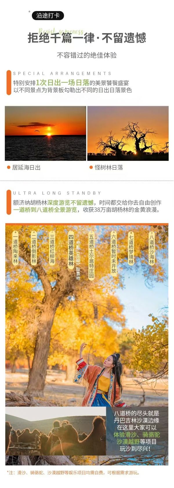 3. 額濟納金秋盛宴每年只有一個月的賞味期,全國各地的游客蜂擁而至,小鎮各項資源過載,當地不斷完善其配套資源但基礎設置仍較薄弱,請大家以平常心對待。
