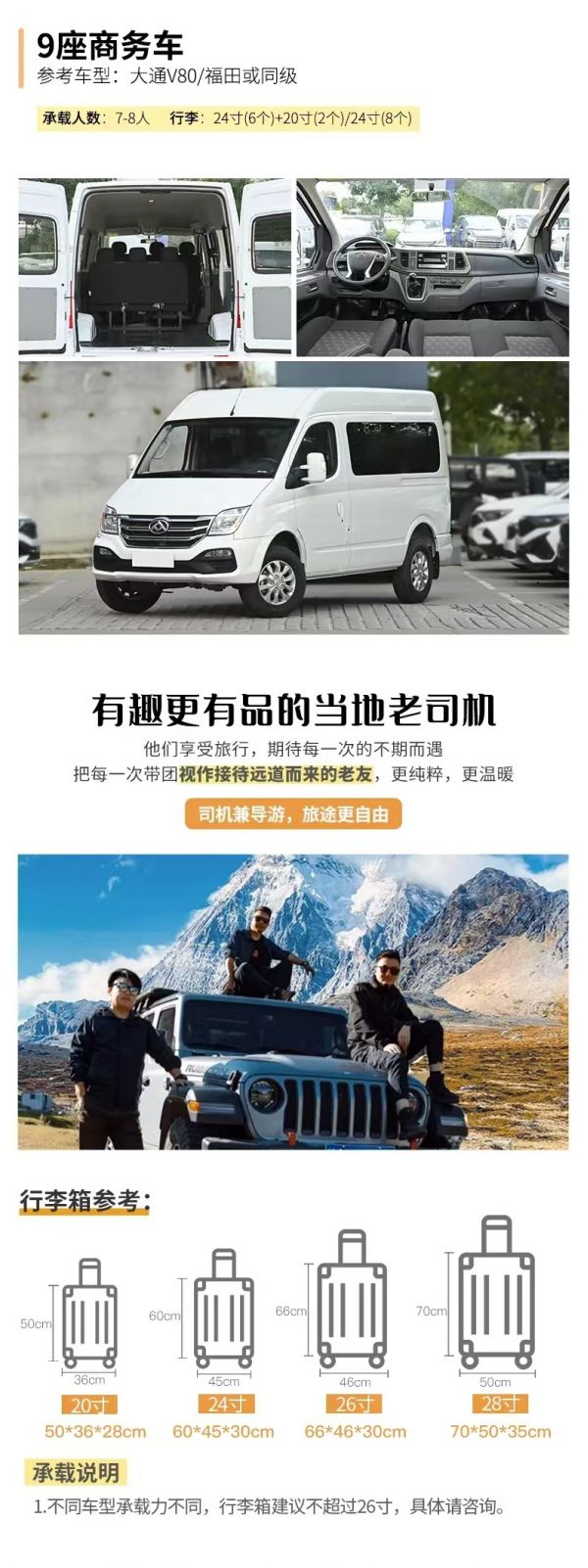 ● 服務:由經驗豐富的司機提供向導服務,司機非導游,不進景區,敬請諒解。