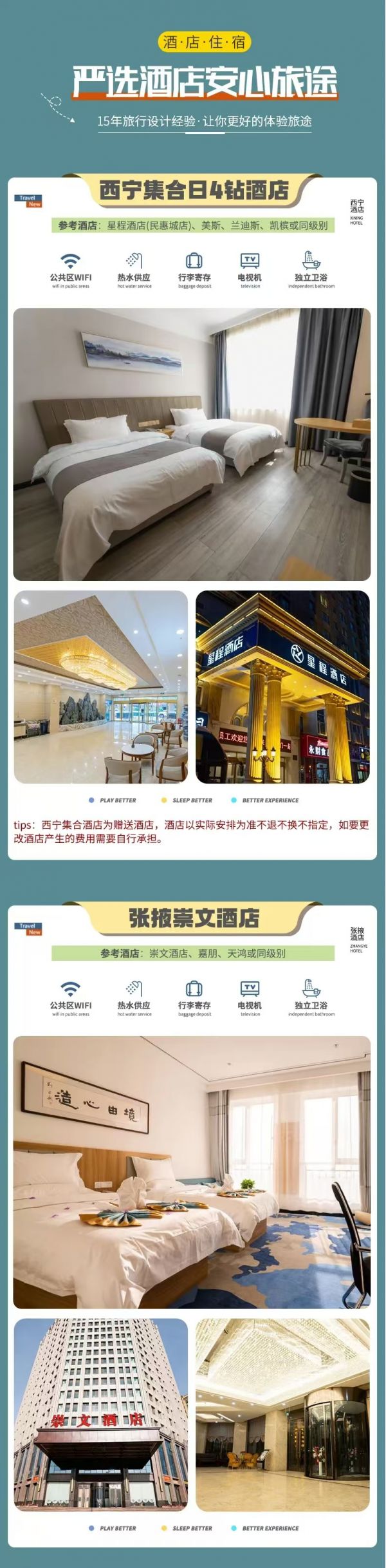 tips:西寧集合酒店為贈送酒店,酒店以實際安排為準均不退不換不指定,如要更改酒店產生的費用需要自行承擔。