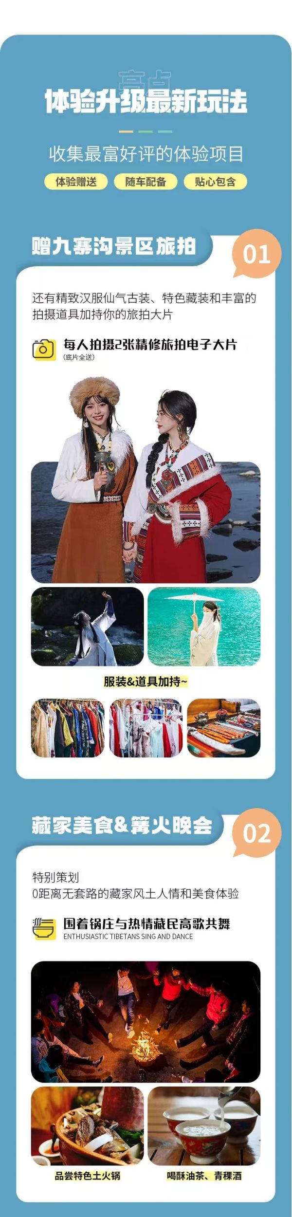 (5)走進藏家藏文化體驗由領隊/司機視實際情況靈活安排在D2或D3;如因九寨溝防疫政策規定,走進藏家暫停營業,則晚餐調整為團餐,望您諒解。