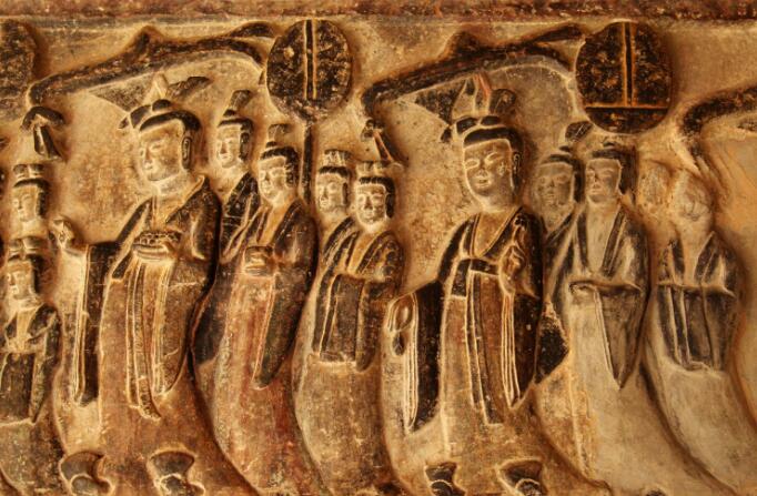 餐后稍事休息,下午考察鄭州的鞏義石窟。石窟諸佛造像多為方圓臉型,神態文雅恬靜,衣紋簡練。禮佛圖、飛天、神獸、佛教故事等是現存較完整的北魏浮雕造像。其中最精美的為第一窟“帝后禮佛圖”,構圖分三層,東邊是以皇帝為首的男供養為前導, 畫面中儀態雍雅的貴族和身體矮小的待從形成了尊卑鮮明的對照。第四窟的“帝后禮佛圖” 人物造型獨具匠心,前呼后擁的禮佛儀仗隊中供養人大腹便便,相貌森嚴,侍從瘦小低微,比主像小三分之一。儀仗隊中有的為帝后攜提衣裙,有的執扇撐傘,有的手捧祭器,浩浩蕩蕩地簇擁帝后進香禮佛,表現了皇室宗教活動的盛大場面。構圖簡練生動,刻工細膩,為我國石窟浮雕藝術中罕見的杰作。