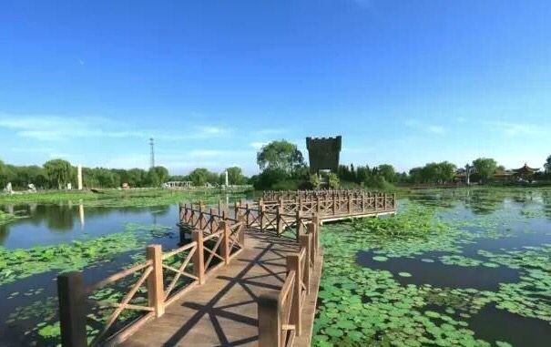 我們特別贈送游船項目。景區水域寬闊,霜雪湖就是利用景區的水資源建成的。霜雪湖濕地水道總長10公里,可與揚州的瘦西湖相媲美,是景區的水上游園線路。沿水道我們可以欣賞鹽堿地特有的生態林、天然濕地風光,形態各異的荷花和水生植物,與各種水鳥親密接觸!中心碼頭設有快艇、竹筏、腳踏船、手劃船等各種水上交通工具。您在此既可以體驗乘風破浪的快感,也可以享受碧波蕩舟漫步“瘦西湖”的愜意!(此處參觀約1小時)