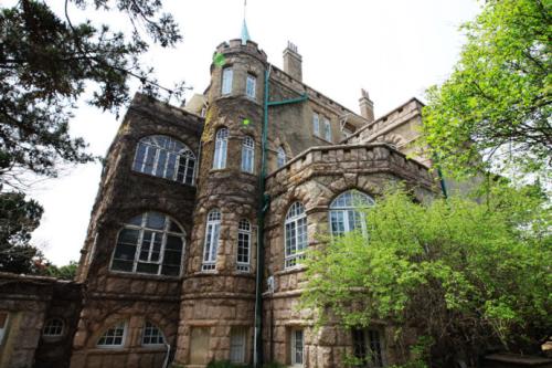 到達花石樓后自由游覽花石樓及八大關,預計游覽1小時。花石樓之所以叫花石樓,主要是因為其內部使用“滑石”作為墻壁內飾裝飾的,因為滑石硬度低,很大一部分墻面保存的不好,被人為刻上了文字。連每個房間的基本功能都看不出來。花石樓的外觀保存十分好,洋樓城堡式的設計。還有一點就是它的外部建筑材料是花崗巖。