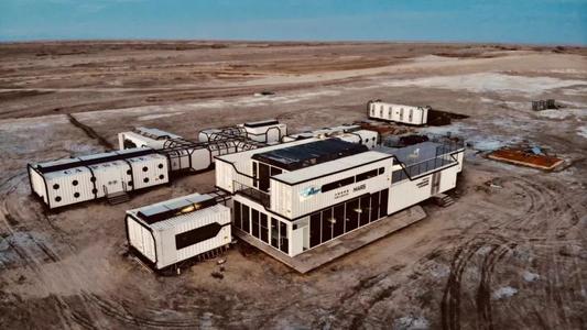 在這片“地球上最不像地球的地方”,以科學、科普和科幻為核心, 中國首個研學火星模擬基地——“火星營地”拔地而起。該項目斥資1.5億,營地建設風格模擬未來人類移居火星后的生存環境,搭建有“總部大樓”“火星艙”等,和周圍的山色融為一體,就像曾經在電影中出現的場景,來到營地的所有人都能身臨其境地體驗到居住在火星的狀態,不由自主地想盡快進入生存挑戰角色,完成“火星移居”的課題研究。
