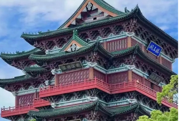 滕王閣的瓦件采用宜興產(chǎn)的碧色琉璃瓦,這種顏色的使用體現(xiàn)了唐宋時(shí)期的建筑風(fēng)格。