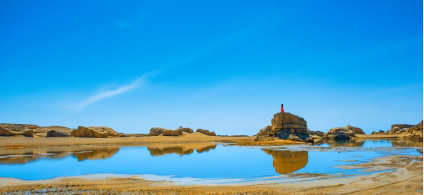 離開 315U 型公路繼續(xù)前行,就到了神奇的水上雅丹。這里原是干涸雅丹地貌,因地下水上升淹沒部分雅丹群,形成獨一無二的水上奇觀。湛藍(lán)湖水與形態(tài)各異的雅丹相互交融,宛如漂浮的城堡。有的雅丹像展翅雄鷹,有的像古老城堡,有的像靈動海豚,令人感嘆大自然的鬼斧神工。乘坐游船穿梭其中,微風(fēng)拂過,湖面漣漪陣陣,仿佛置身夢幻之境。這里的日出日落絕美,金色陽光灑下,水上雅丹一片金黃,美到令人陶醉。