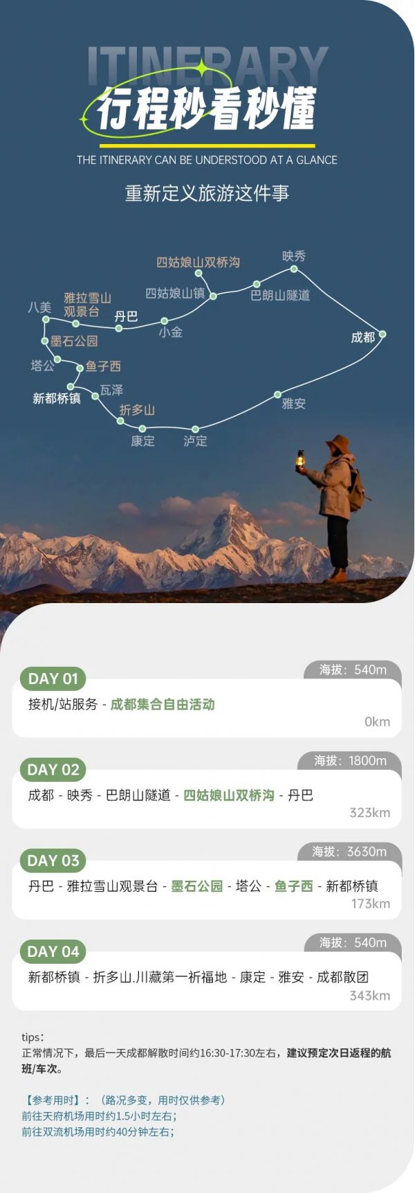 由于川西地區路況復雜,山道狹窄,有可能因為堵車而發生延誤,請大家盡量預定第二天返程的航班或車次。