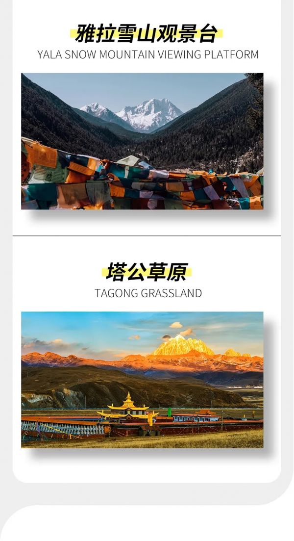 途徑塔公草原。塔公草原廣袤無垠,遠處的雅拉雪山巍峨聳立,與草原上的塔公寺相互呼應。草原上牛羊成群,牧民的帳篷星星點點散布其中,您可以在這里稍作停留,欣賞草原風光,感受草原的寧靜與遼闊。