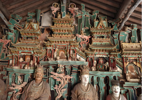 【長治觀音堂】:國保單位。 驚嘆于明代懸塑藝術的巔峰之作,滿天神佛、亭臺樓閣懸于梁架,精美絕倫,被譽為“懸塑瑰寶”。