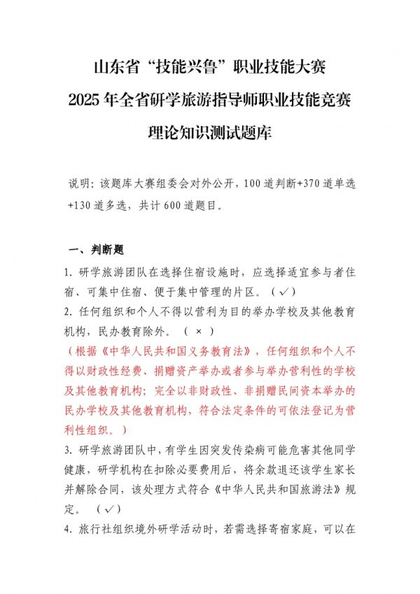 下列鏈接為”山東省“技能興魯”職業技能大賽 2025 年全省研學旅游指導師職業技能競賽理論知識測試題庫“