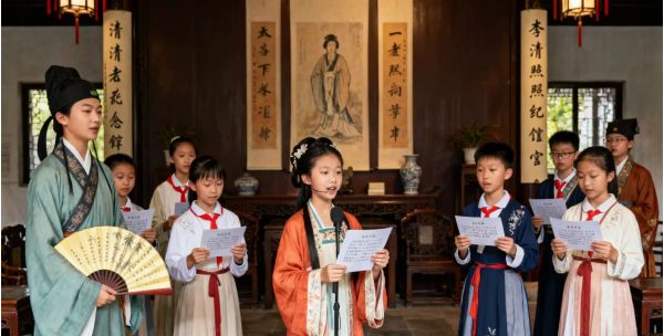 1. 參觀主泉區:觀察趵突泉“三股水”噴涌形態,用放大鏡查看泉眼細節,分組采集水樣并使用pH試紙檢測水質,記錄數據; 2. 走進李清照紀念堂:聆聽講解員講述泉水與易安文化的關聯,開展“泉水詩詞誦讀會”,學生輪流分享背誦的泉水詩句 |