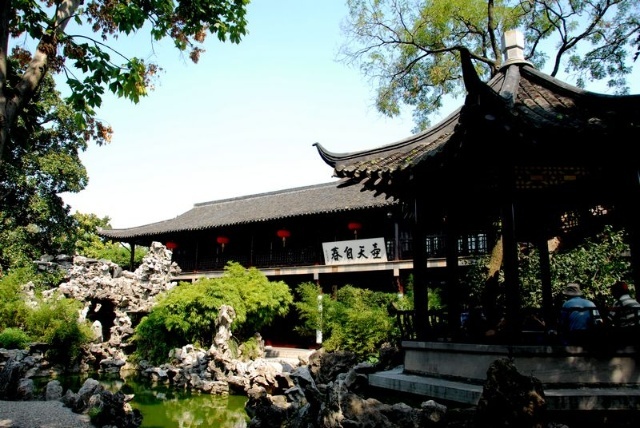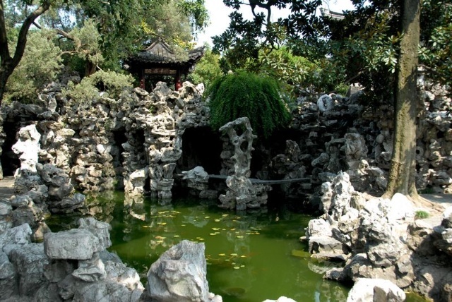 夏景:疊石以青灰色太湖石為主,疊石似云翻霧卷之態(tài),造園者利用太湖石的凹凸不平和瘦、透、漏、皺的特性,疊石多而不亂,遠(yuǎn)觀舒卷流暢,巧如云、如奇峰;近視則玲瓏剔透,似峰巒、似洞穴。山上古柏,枝葉蔥郁,頗具蒼翠之感;山下有池塘,池中游魚(yú)嬉戲穿梭于睡蓮之間,靜中有動(dòng),極富情趣。池塘右側(cè)有一曲橋直達(dá)夏山的洞穴,洞之幽深,頗具寒意,即使炎熱的夏天,人們步入洞中,頓覺(jué)清爽。