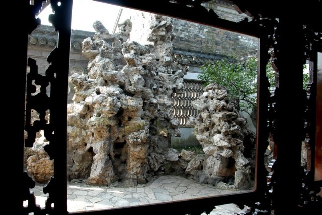 冬景:造園者將冬景安排在南墻之下,背靠高墻幾乎終年不見(jiàn)陽(yáng)光,遠(yuǎn)遠(yuǎn)望去似積雪未消,地面用白石鋪成。冬山用宣石(石英石)堆疊,石質(zhì)晶瑩雪白,每塊石頭幾乎看不到棱角,給人渾然而有起伏之感。造園者不知是有意還是無(wú)意將假山堆疊得如一群獅子,遠(yuǎn)觀似一頭頭雪獅歡騰跳躍,憨態(tài)可掬。南面高墻上有二十四個(gè)風(fēng)音洞,后面的巷風(fēng)襲來(lái),時(shí)而發(fā)出呼嘯之聲。造園者不光利用“雪色”來(lái)表現(xiàn)冬天,還巧妙地將“風(fēng)聲”也融合到表現(xiàn)手法中去,令人拍案叫絕。