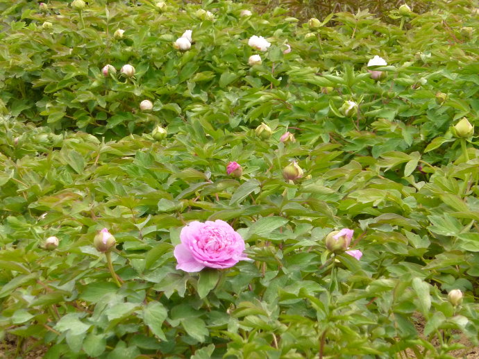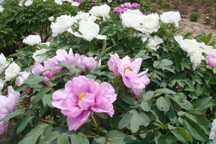 百花園面積一百畝,植牡丹十二萬多株,560個品種,芍藥六萬余株,270多個品種,以傳統稀有珍貴品種多,花色齊全,分布合理便于觀賞而馳名。同時培育出牡丹新品種賽雪塔、春紅嬌艷、銀紅球、百園粉等數十種,具有很高的觀賞價值。因而百花園又有“品種園”之稱。十幾年來,百花園牡丹不僅在杭州、蘇州、廣州、上海等城市舉辦大型牡丹展,而且與日、美、新加坡、荷蘭、臺灣等國家和地區開展交流,引進日本的金寶、金閣、花王、太陽等品種。百花園東倚220國道,南靠市區,交通方便。