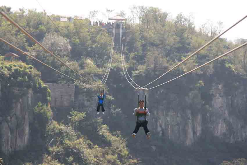 景區主推的精品項目有演武場中的大型馬戰、馬術表演和天然地下冰宮的冰雕藝術展。