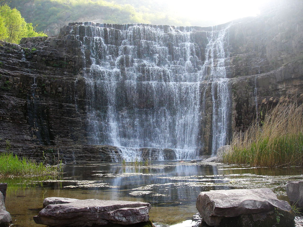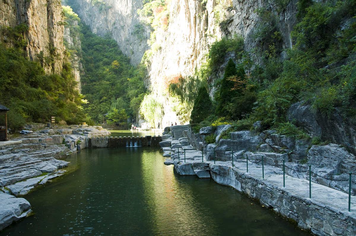 紅旗渠以濁漳河為源。渠首位于山西省平順縣石城鎮(zhèn)侯壁斷下。總干渠長(zhǎng)70.6公里,渠底寬8米,渠墻高4.3米,縱坡為1/8000,設(shè)計(jì)加大流量23秒立方米,全部開鑿在峰巒迭嶂的太行山腰,工程艱險(xiǎn)。