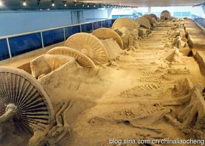 沿著歷代車輪的軌跡,步出古車陳列展廳,通過過廊而進入地下春秋殉車馬展廳,這就是一九九O年中國十大考古發(fā)現(xiàn)之一的后李春秋殉車馬發(fā)掘現(xiàn)場。殉車馬分一號坑和二號坑。一號坑十輛古車南北一字排列,三十二匹馬昂首而臥,四蹄卷曲,馬頭的裝飾品各種各樣,清晰可見。二號坑有馬六匹,聊城旅游網(wǎng)版權(quán)所有聊城聊之旅國際旅行社有限公司,轉(zhuǎn)載必究!