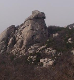 在黃河岸邊的艾山東南坡上,有一塊奇異的大石頭攀附在崖壁上,遠遠望去,猶如一只大蛤蟆一顛一顛地朝山上爬行。
