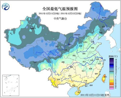 中央氣象臺2011年12月11日17時發布未來三天全國天氣預報:南部海域有大風 較強冷空氣將影響中東部!