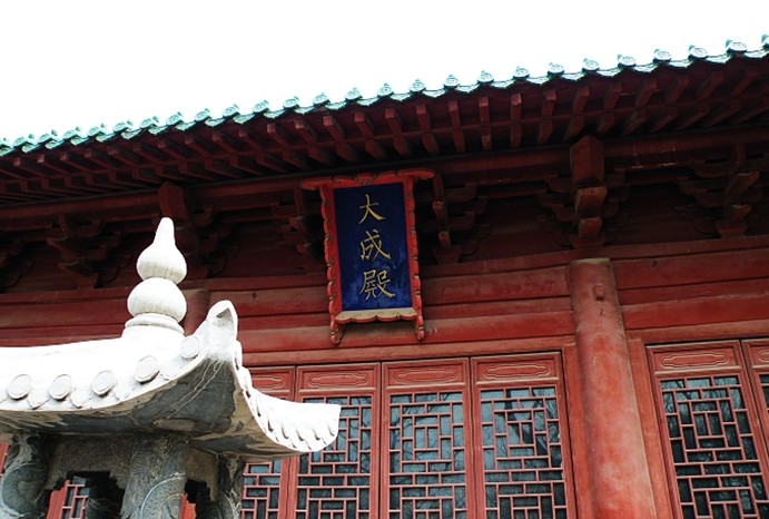 莘縣文廟始建于明洪武三年,系舊時祭祀孔子的場所。文廟原由欞星門、大成殿、啟圣祠、明記堂、敬亭、名宦鄉賢二祠等組成,現僅存大成殿。文廟占地面積2439平方米,大成殿建臺基上,面闊五間,東西闊19米;進深三間,南北長11.8米 ,單檐歇山頂。殿內的檐柱、前金柱、后金柱的直徑均很碩大,金柱高4.4米 ,前后金柱上擱置著七架梁、五架梁、三架梁。殿內的脊檁枋下釘一塊木板,木板上有題記:“ 大明弘治十二年歲次己未秋七月吉旦提調官知縣孟□門主□桂……”。版權所有山東聊城聊之旅國際旅行社有限公司,轉載必究!在殿內前上金檁枋下釘的木板上還有二則題記,分別是:“大明崇禎六年歲次癸酉中秋吉旦……”和“大清乾隆貳拾年歲次乙亥陸月吉旦文教郎知莘縣事儒學……。”大成殿的木柱和梁架風格古樸,有元末明初的特征,具有較高的文物價值。