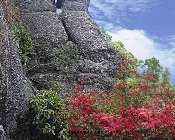 在羅漫山上生長著許多天然杜鵑樹(映山紅),每年春分前后為盛花期,到時漫山遍野鮮紅一片,十分宏偉壯觀。