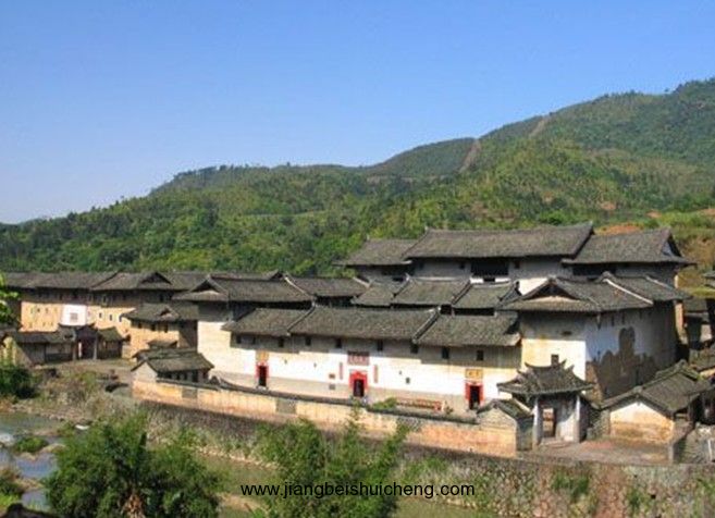 后樓9開間,被分隔成3個單元,每單元3開間,各設一道樓梯上下,樓梯位于面積較大的中間一間。每層的樓梯前向為廳堂,后向分隔為2個小房間。二層以上的結構與底層的結構相同,最頂上的半層則為閣樓。版權所有山東聊城聊之旅國際旅行社有限公司,轉載必究!后樓前面左右兩邊各有一口水井。舊時樓里的族長居住在后樓,以示尊貴。與前后樓連接的兩側橫樓高2層,磚木結構,兩樓對稱,內通廊式,穿斗、抬梁混合式木構架。橫樓外側各有一排磚木結構的平房,兩邊對稱,與橫樓平行,分設廁所、豬圈、雜物間、磨房、隹間等。該樓前堂(樓)、中堂(樓)為斷檐懸山頂,后堂(樓)為斷檐歇山頂,飛檐翹角。前、中、后堂(樓)屋頂作3段迭落,由前往后層層升高,屋頂坡度比其他種類的土樓的屋頂坡度要大得多,更顯得氣宇軒昂。