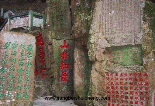 1.宋時(shí)徐錫之題喝水巖詩(shī):“重巒復(fù)嶺鎖松關(guān),只欠泉聲入座間;我若當(dāng)年侍師側(cè),不教喝水過(guò)他山” 認(rèn)為此處重巒疊嶂,不可無(wú)水;當(dāng)年要是他在,就會(huì)勸法師不要讓溪水改道。用反意評(píng)說(shuō)歷史傳說(shuō),亦饒有風(fēng)趣。