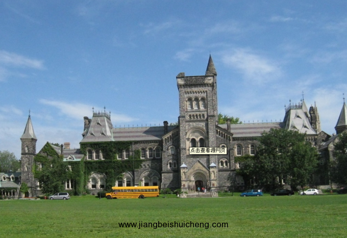 多倫多大學有三個校區。一個是圣喬治校區(St. George campus),面積0.55平方公里,稱為校本部。另兩個是士嘉堡校區(Scarborough campus)和密西沙加校區(Mississauga campus),面積各為1.21和0.84平方公里,分別位于多倫多大學的東、西各距圣喬治學院33公里。每天有班車來往期間,交通極其便利。多倫多是加拿大最大的城市之一,有人口2520000。她濱臨北美五大湖之一的安大略湖,與美國布法羅市遙遙相望。交通發達,每天有航班飛機飛往紐約、倫敦和法蘭克福以及南美洲的世界大都市。高速公路和鐵路四通八達。經濟繁榮、商業發達,是加拿大最大的經濟和文化中心。也是加拿大最活躍的旅游勝地之一。