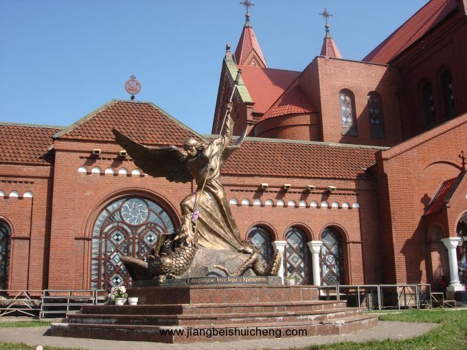 勝利廣場的勝利女神紀(jì)念碑高141.8米,象征衛(wèi)國戰(zhàn)爭1418個戰(zhàn)斗的日日夜夜。三棱形的碑身,每個棱面上用浮雕板表現(xiàn)了莫斯科等12個英雄城市周圍的戰(zhàn)斗情景.高約100米外,古希臘勝利女神右手拿著金光燦燦的勝利桂冠。她身旁飛著兩個胖胖的小天使,一男一女,吹著勝利的號角。版權(quán)所有山東聊城聊之旅國際旅行社有限公司,轉(zhuǎn)載必究!紀(jì)念碑的下面,是神奇勇士格奧爾基手持長矛刺殺毒蛇的雕像。前面5層階梯式臺階,每一層代表戰(zhàn)爭的一年。