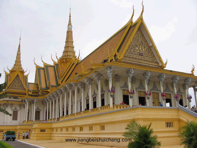 是諾羅敦國王于1866——1870年建造的,坐落在洞里薩河邊,也稱四臂灣大王宮,有寬敞平整干凈的馬路和大塊的草坪廣場,包含國王的住所在內共有20余座建筑。王宮為長方形,長435米,寬402米,外有城墻。王宮的建筑具有高棉傳統建筑風格和宗教色彩,宮殿均有尖塔,代表繁榮;殿身涂以黃、白兩色,黃色代表佛教,白色代表婆羅門教。王宮最初為木結構,后改建為水泥結構,但保持了原來的風貌。版權所有山東聊城聊之旅國際旅行社有限公司,轉載必究!王宮內還有銀殿(Silver Pagoda)和拿破侖三世博物館。銀殿因地面鋪有5000塊銀磚而得名,是由諾勒丹國王于1829年用意大利大理石所興建,寺內收藏大量珍貴文物,包括一尊西索瓦國王的金制塑像(重90公斤,上嵌9584粒鉆石,最重的一顆達25克拉),一尊17世紀的大型翡翠玉佛像,一幅40多厘米高的鑲金壁畫等等。回廊的墻壁上繪有歷代王朝功績和宗教故事的壁畫,也是重要文物,并陳列著外國國家元首送的禮品。參觀王宮有時間限制,而且著裝必須整潔。黃昏王宮廣場上人很多,既有納涼的本地人和僧侶,也有天南海北的游客。