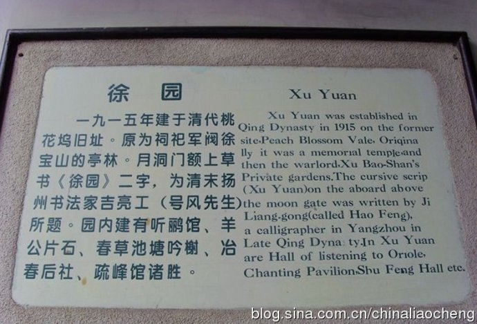 徐園始建于一九一五年的桃花塢舊址,此石碑上面記載了徐園的概況