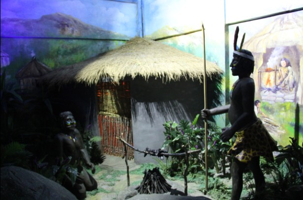 保護之神看這位魁梧的神拿著竹竿守護著家園,這位年紀大的人好像在祈求神幫忙。