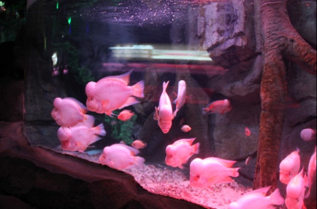 奇石怪狀的石頭旁,五顏六色的小魚在自由自在的有著,讓這幅畫面充滿了和諧感,愜意感。