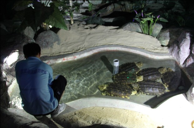齊河海洋世界的管理員測試水溫,它引起了我的好奇感,讓我對烏龜的研究更徹底。