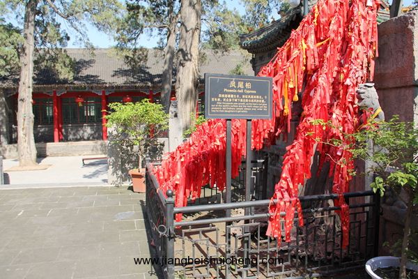 園內(nèi)種植著旋生柏、鳳尾柏、結(jié)義柏等多棵柏樹(shù)