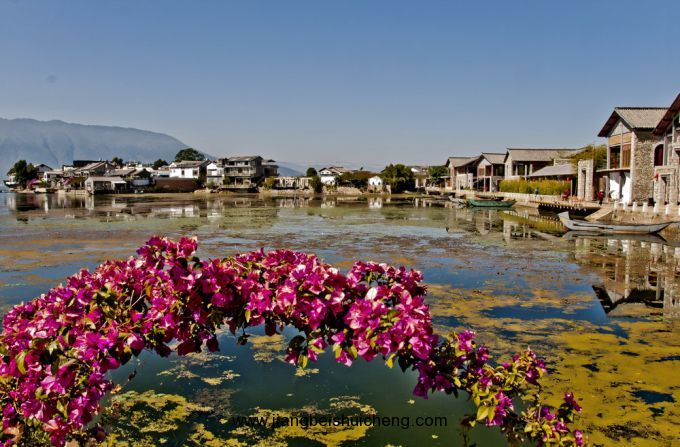 雙廊自古就是名人學者滯留的地方,古有楊升庵、李元陽,今有舞導家楊麗萍、作家蘇童、畫家趙青等?;蛟S雙廊就是一處圣地,躋身于此,我感受到從未有過的平靜與安逸,仿佛自己真的就遠離了塵世,找到了夢幻中的祥和。而玉璣島也給了我同樣的感覺,風光秀麗的玉璣島、與南面的金梭島南北相對,二島猶如浮在水面的一對鴛鴦,再加上,拍打礁石的陣陣海浪聲,真真是應了一句話,置身于此,只羨鴛鴦不羨仙。島上人家民風淳樸,我們路過一戶人家,好客的白族主人熱情地邀請我們進去坐坐,閑話家常,一瞬間,我錯覺到,我不是在旅游,卻像是回到了家一般,如此溫馨。