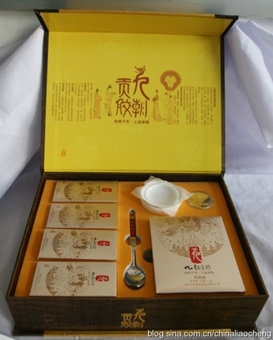 李時珍在《本草綱目》中稱之為“圣藥”。與人參、鹿茸并稱“中藥三寶”。有關阿膠的記載最早見于《神農(nóng)本草經(jīng)》,距今約有二千年。書中寫道:阿膠“生東平郡,煮牛皮作之,出東珂。”可見阿膠最初是用牛皮熬制的。傳至唐代,人們發(fā)現(xiàn)用驢皮熬的阿膠,藥用功效更好,便將牛皮改為驢皮,并沿用至今。