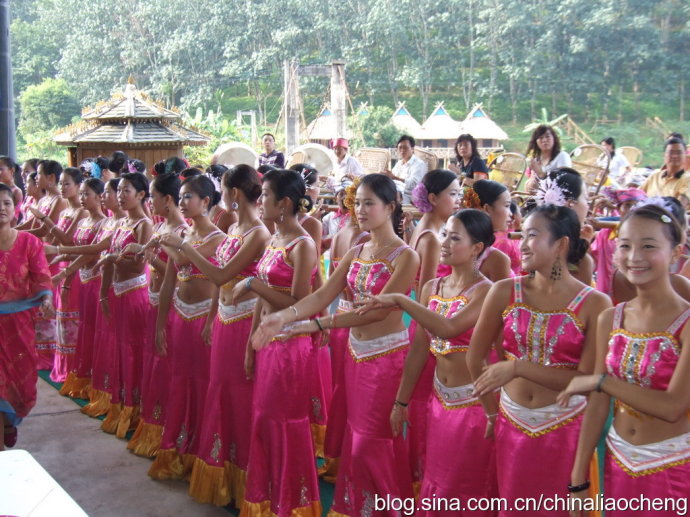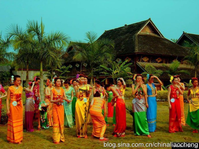 傣族是西雙版納人口最多的少數民族,有精巧的竹樓,優美的孔雀舞。傣族少女服飾精美、容姿秀麗、能歌善舞,是西雙迷人的景致之一。傣族人居住的竹樓是一種干欄式建筑。竹樓近似方形,以數十根大竹子支撐,懸空鋪樓板;房頂用茅草排覆蓋,竹墻縫隙很大,既通風又透光,樓頂兩面的坡度很大,呈“A”字形。竹樓分兩層,樓上住人,樓下飼養牲畜,堆放雜物,也是舂米、織布的地方。傣族男子一般上穿無領對襟袖衫,下穿長管褲,以白布或藍布包頭。傣族婦女的服飾各地有較大差異,但基本上都以束發、筒裙和短衫為共同特征。筒裙長到腳面,衣衫緊而短,下擺僅及腰際,袖子卻又長又窄。