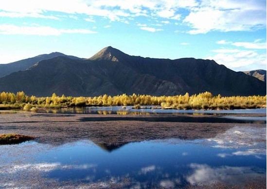 然烏湖(N29°25',E96°45'),位于昌都地區(qū)八宿縣境內(nèi)西南角,距離縣城白馬鎮(zhèn)約90千米的然烏鄉(xiāng),面積為22平方千米,湖面的海拔高度為3850米。意為“尸體堆積在一起的湖”,傳說中湖里有頭水牛,湖岸有頭黃牛,他們互相較量角力,死后化為大山,兩山相夾的便是然烏湖。形成是由于山體滑坡或泥石流堵塞河道而形成的堰塞湖。