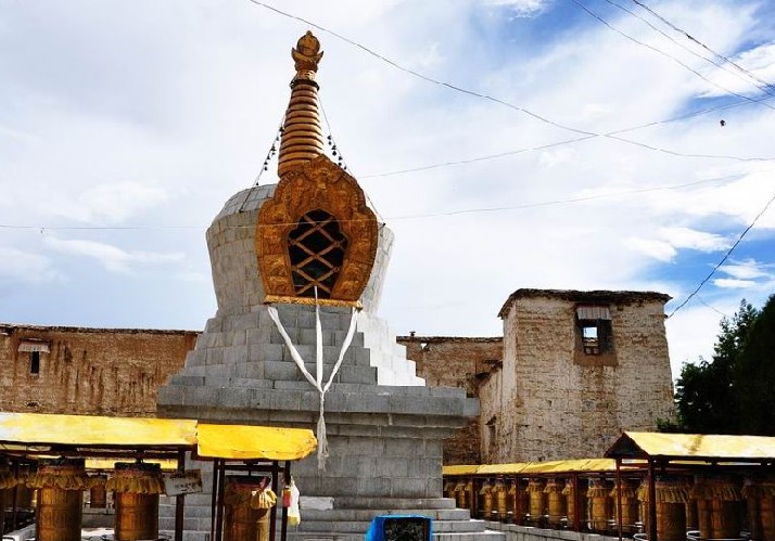阿巴扎倉(cāng)二樓為僧房和無(wú)量光佛殿(溫巴埋拉康),殿中供有無(wú)量光佛合金像、貢若堅(jiān)村桑布包銀靈塔、杰尊曲結(jié)堅(jiān)村包銀靈塔,還有一座拉藏汗(?~1717年。清代蒙古和碩特部貴族首領(lǐng))出資修建的善逝塔。三樓主要作為達(dá)賴(lài)的臥室。
