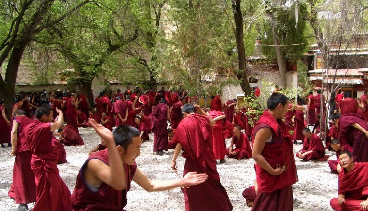 辯經(jīng),是一種佛學(xué)知識(shí)的討論,也可以說(shuō)是喇嘛們的一種學(xué)習(xí)方式。色拉寺的僧人們每天有一次辨經(jīng)活動(dòng)。這是一種富于挑戰(zhàn)性的辯論,雙方唇槍舌劍,言詞激烈,辯論者往往借助于各種手勢(shì)來(lái)增強(qiáng)辯論的力度,他們或擊掌催促對(duì)方盡快回答問(wèn)題,或拉動(dòng)佛珠表示借助佛的力量來(lái)戰(zhàn)勝對(duì)方。辯論場(chǎng)上的熱烈氣氛使游人也深受感染。