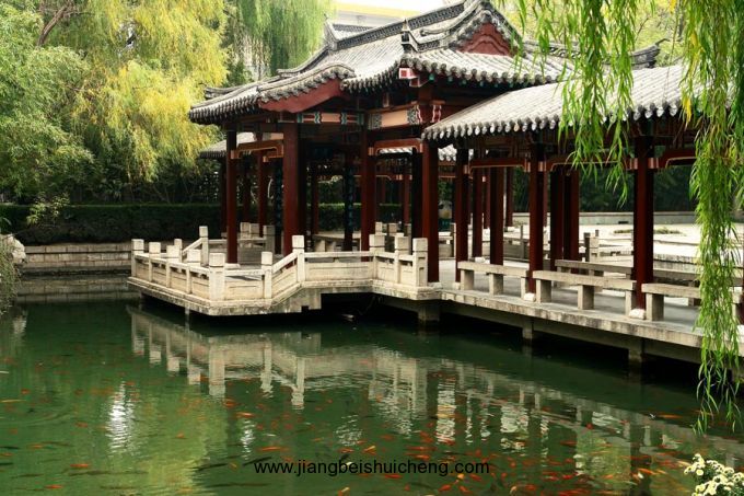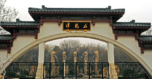五龍潭,位于濟南舊城西門外,洛源橋北,南臨趵突泉,北接。潭周名泉眾多,形成五龍潭泉群,為濟南四大泉群之一,內有泉池二十七處。公園的建園風格兼具有南北造園之精華,是以潭池溪港等景觀構成,質樸野逸為特點的園林水景園。此水域風景秀麗,柳絲醮波,鳴禽啾啾,荇藻漂浮,錦魚嬉戲,素有“夾岸桃花,恍若仙境”之美譽,風景幽雅獨具特色。