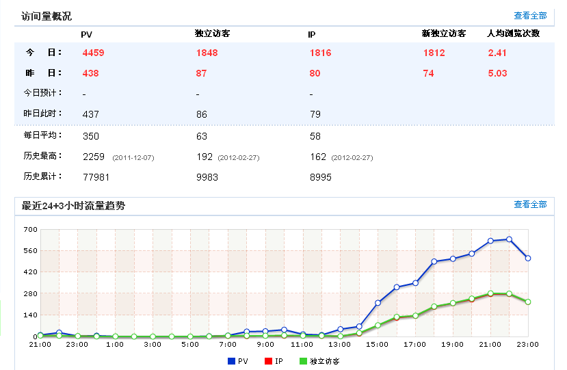 之旅旅行社官方網站www.qd-kingoal.com.cn日流量 4459!創2012.1.1上線以來新高!恭喜聊之旅旅行社網絡中心團隊!