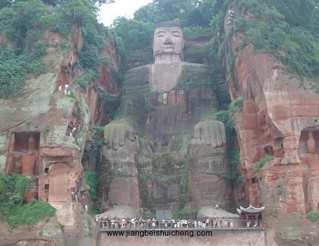 版權所有,山東聊城聊之旅國際旅行社有限公司,轉載必究!在大佛左右兩側沿江崖壁上,還有兩尊身高超過16米的護法天王石刻,與大佛一起形成了一佛二天王的格局。與天王共存的還有數百龕上千尊石刻造像,宛然匯集成龐大的佛教石刻藝術群。大佛左側,沿“洞天”下去就是近代開鑿的凌云棧道的始端,全長近500米。右側是唐代開鑿大佛時留下的施工和禮佛通道——九曲棧道。佛像雕刻成之后,曾建有七層樓閣覆蓋(一說九層或十三層),時稱“大佛閣”、“大像閣”;宋時稱“凌云閣”、“天寧閣”;元代稱“寶鴻閣”;明代俗稱“佛棚”、清代俗稱“佛亭”,最終廢毀……至今,仍舊可以從大佛兩側的山崖上看到多處孔穴和屋檐痕跡,專家證實,這些正是歷代建造或維修樓閣時,安置梁柱和屋檐的地方。